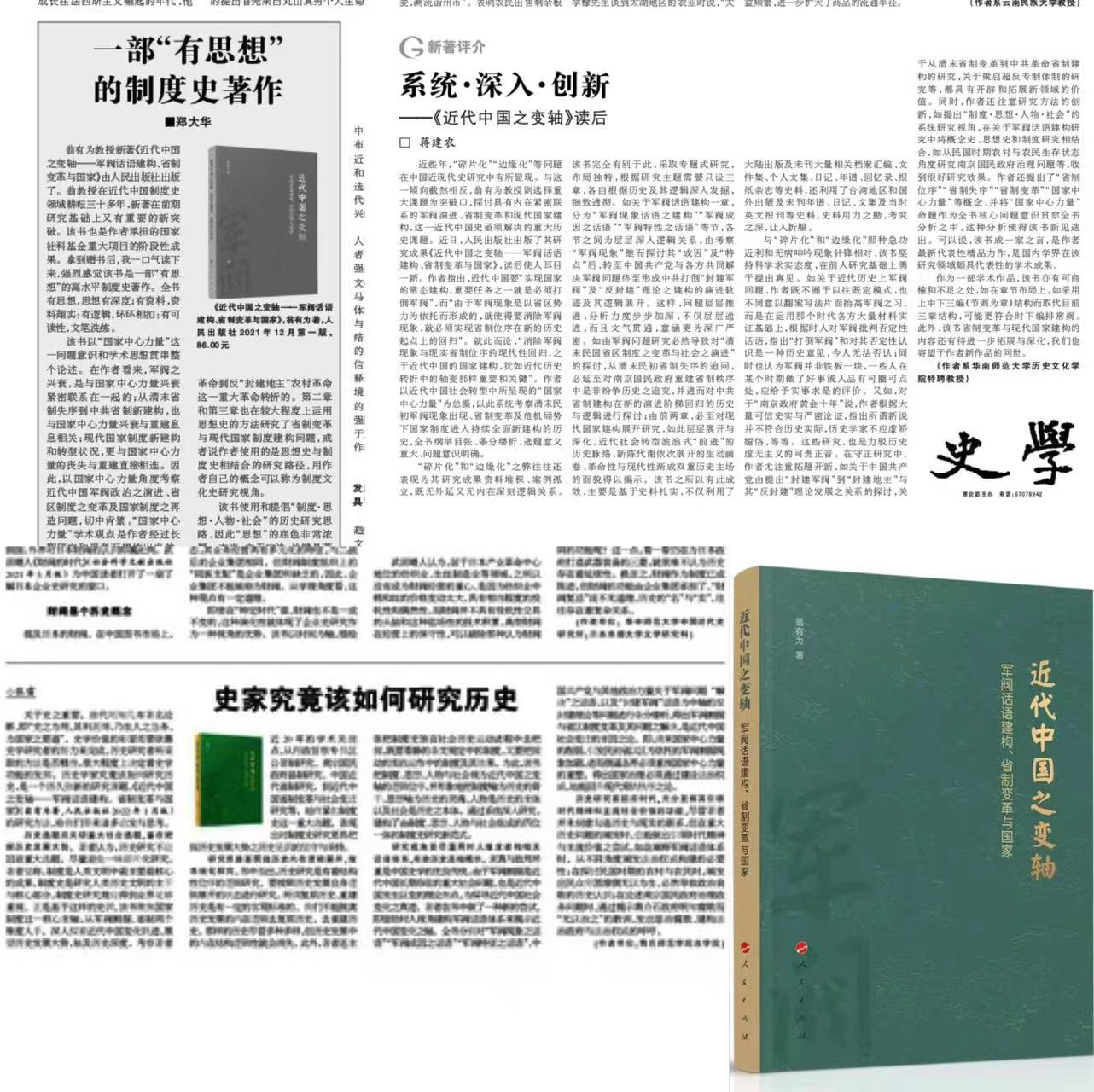全国政协委员、中国社会科公司中国近代史所研究员郑大华在《中华读书报》(2022年3月9日,第10版)发表《一部“有思想”的制度史著作》一文,他认为“强烈感觉该书是一部‘有思想’的高水平制度史著作。全书有思想,思想有深度;有资料,资料翔实;有逻辑,环环相扣;有可读性,文笔洗练”。“该书不仅具有重要学术价值,而且对于新时代推进国家治理体系和治理能力现代化建设,也具有启示意义,可以发挥以史为鉴的作用”。