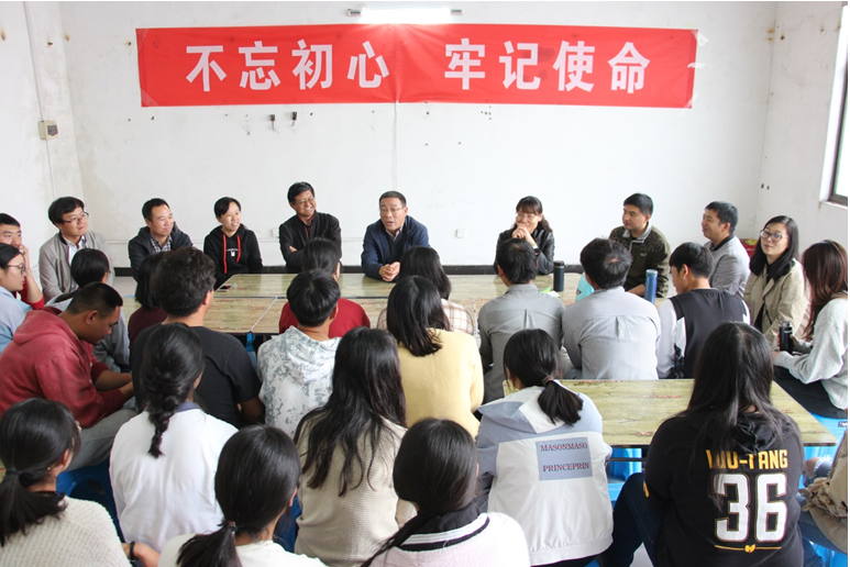 伟德国际1949官网公司党委深入开展“不忘初心、牢记使命”主题教育之际,11月1日,公司党委副书记姜捷、副经理李竞艳、党办主任王文君以及团委负责人、2017级辅导员郑振亚等与考古文博系新任领导班子成员一起,赴焦作市修武县李固村慰问看望实习师生。