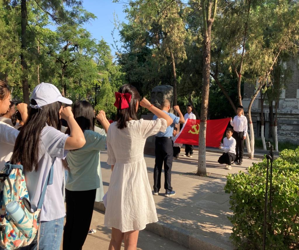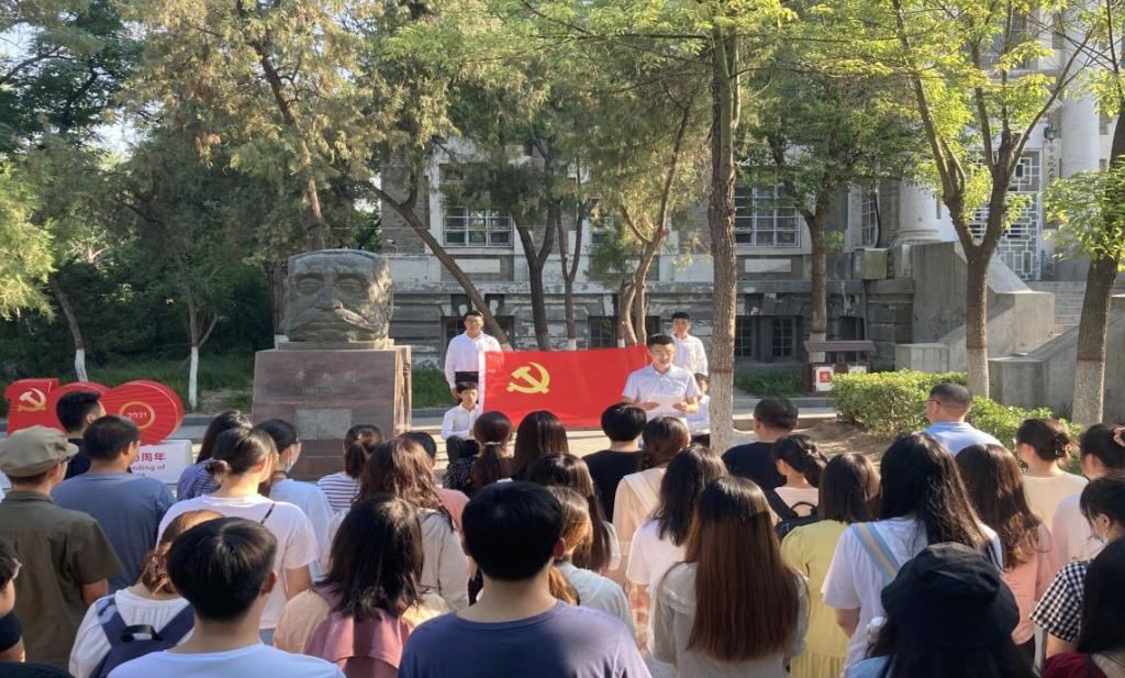 6月24日上午,伟德国际1949官网在明伦校区六号楼李大钊先生塑像前举行新党员入党宣誓暨党员重温誓词仪式。公司教师党员代表、46名新党员参加本次活动,仪式由公司党办主任王文君主持。