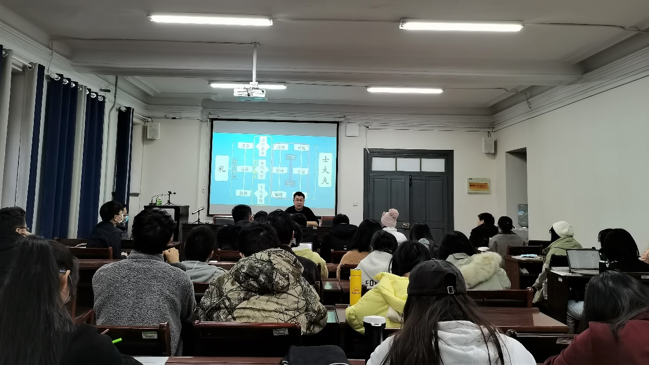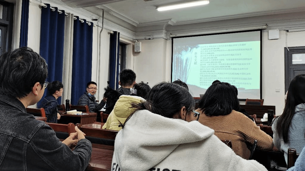 读书会由2019级杨英健以《士大夫与礼——基于<士大夫政治演生史稿>尊尊亲亲贤贤的讨论》为主题的汇报拉开序幕。杨英健就先秦士大夫的含义进行分析,指出“士”与“事”、与“学”有着密切联系。他重点辨析了“礼治”、“尊尊亲亲贤贤”等的演变发展历程,结合书中社会分化的特定视角提出自己的看法。接着,2019级王中宇汇报了题为《士大夫权力的产生与解体》的小组读书思考。他从阶层的产生、士大夫特权的稳固及士大夫特权的解体三方面展开分析,点出士大夫权力是在王权逐渐集中的过程中日趋衰弱。2020级李婷关于“西周无‘大夫’”问题,以《浅谈卿大夫》为题进行了读书报告。她在报告中对“大夫”阶层的产生及其延伸演化进行了探讨。2020级魏静远围绕《先秦政治思想史》,做了题为《商代神权统治的崩溃及周公对信仰的重建》的汇报。在回顾学界相关研究之后,他梳理了商周时期的神权变化、信仰危机的出现及周公对信仰重建等问题,并解释了西周信仰重建的原因。