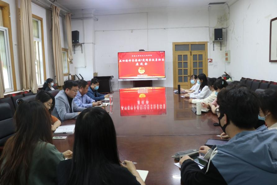 为迎接五四青年节及中国共青团建团100周年,伟德国际1949官网于5月3日下午在三楼会议室召开“五四精神齐赓续·爱国荣校勇担当”主题座谈会。公司党委书记张占党、党委副书记周文凯、团委负责人、2019、2020级本科生辅导员贾茜贝、2021级本科生辅导员郭浩及员工代表参加。座谈会由周文凯主持。