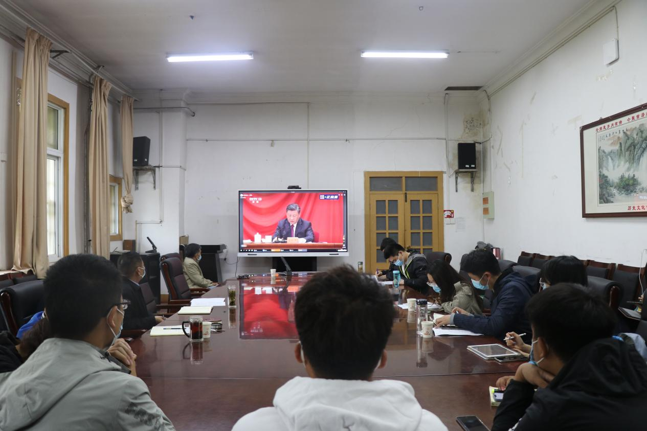 伟德国际1949官网在三楼会议室组织集中观看活动,公司党委书记张占党、副书记周文凯、党委委员赵金康教授、全体辅导员老师和员工代表参加,认真聆听了习近平总书记的重要讲话。