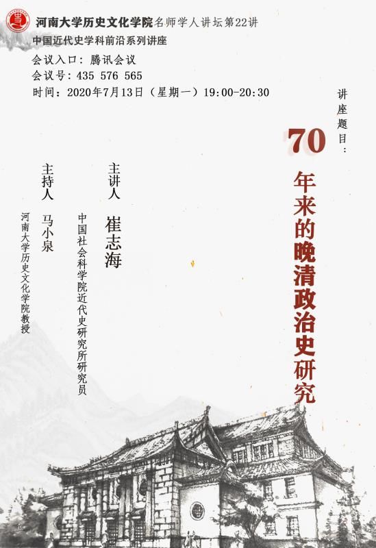 【讲座通知】崔志海:70年来的晚清政治史研究