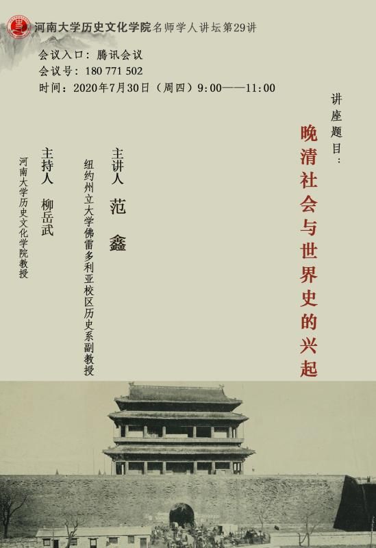 【讲座通知】范鑫:晚清社会与世界史的兴起
