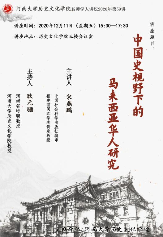 【讲座通知】宋燕鹏:中国史视野下的马来西亚华人研究