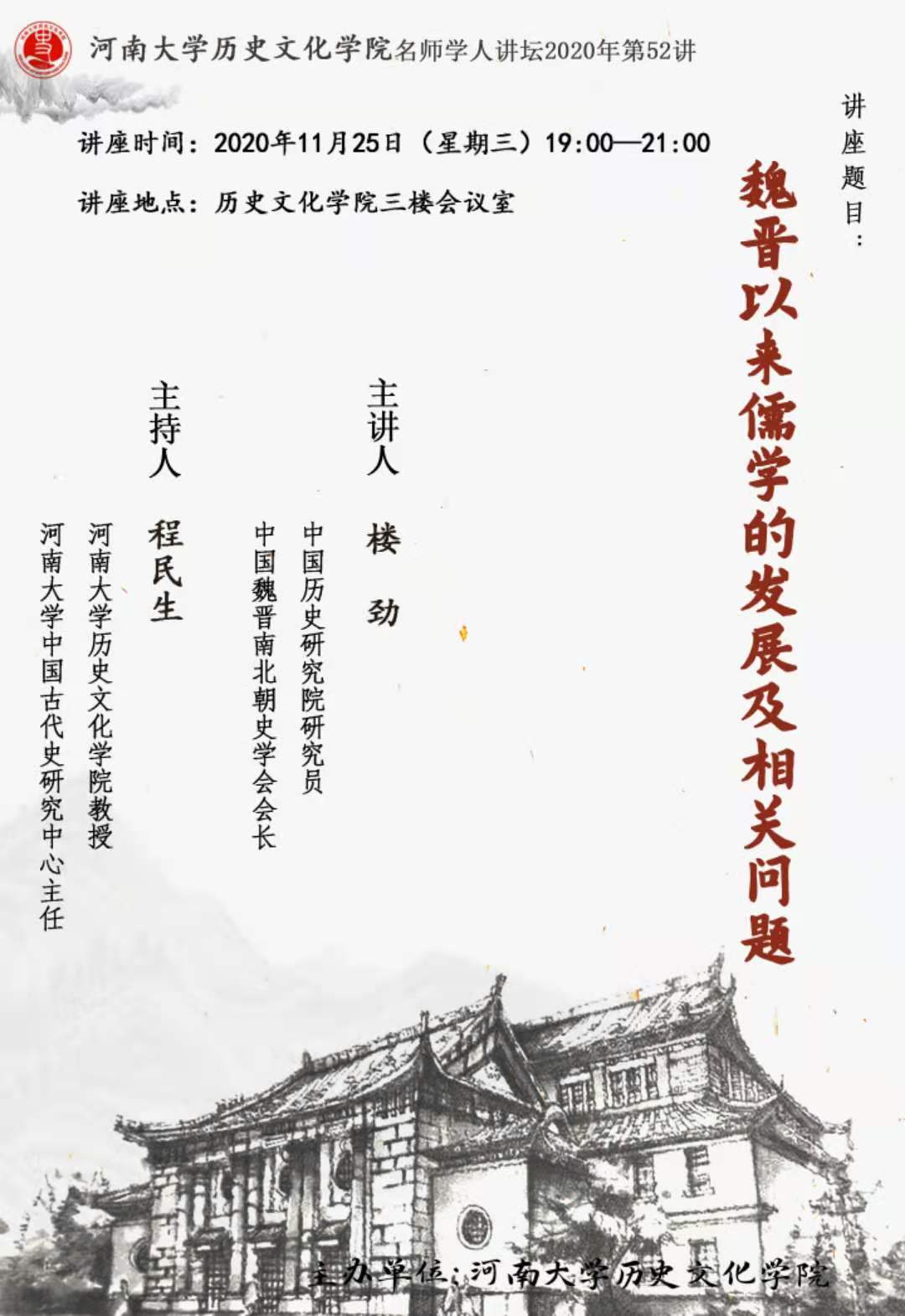 【讲座通知】楼劲:魏晋以来儒学的发展及相关问题