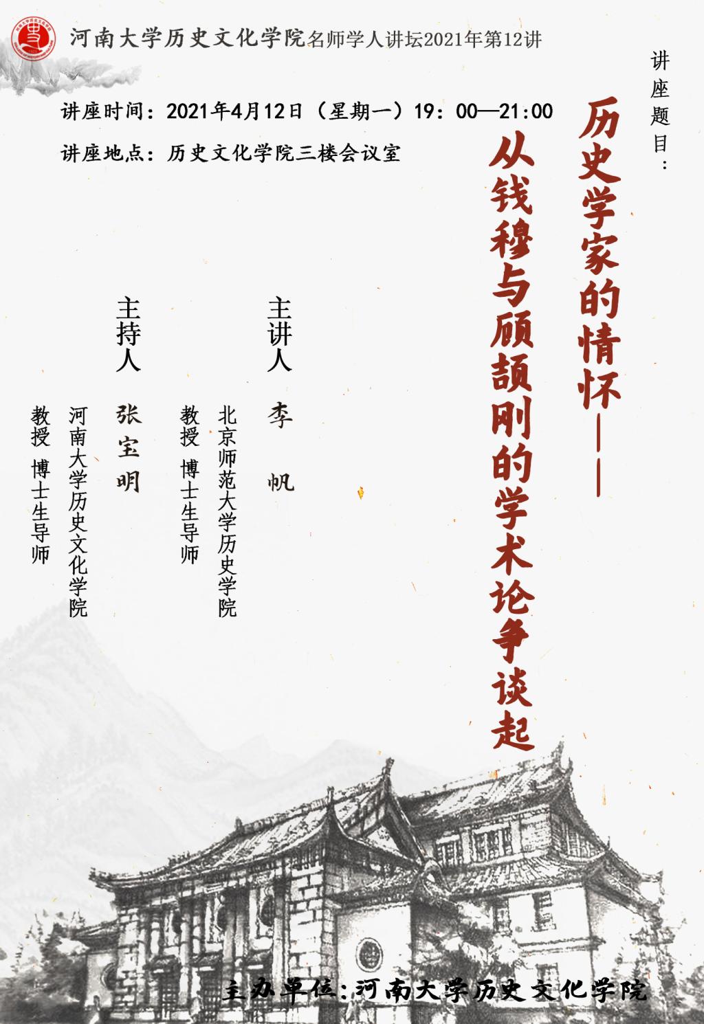 【讲座通知】李帆:历史学家的情怀——从钱穆与顾颉刚的学术论事谈起