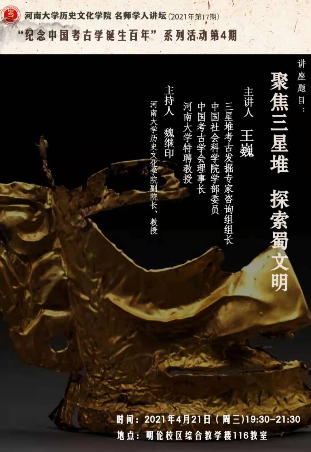 【讲座通知】王巍:聚焦三星堆 探索蜀文明