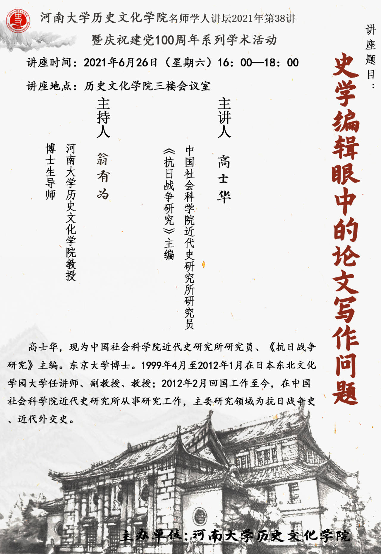 【讲座通知】高士华:史学编辑眼中的论文写作问题