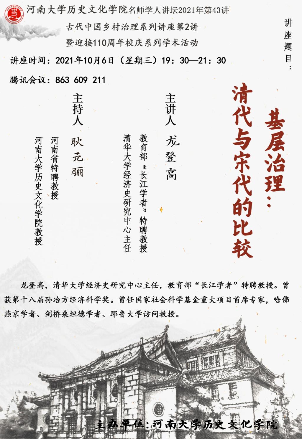 【讲座通知】龙登高:基层治理:清代与宋代的比较