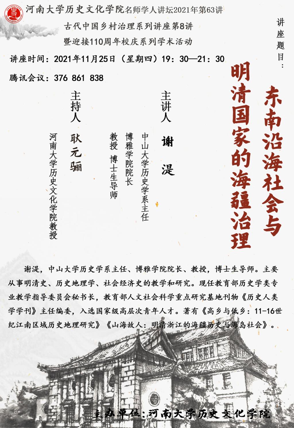 【讲座通知】谢湜:东南沿海社会与明清国家的海疆治理
