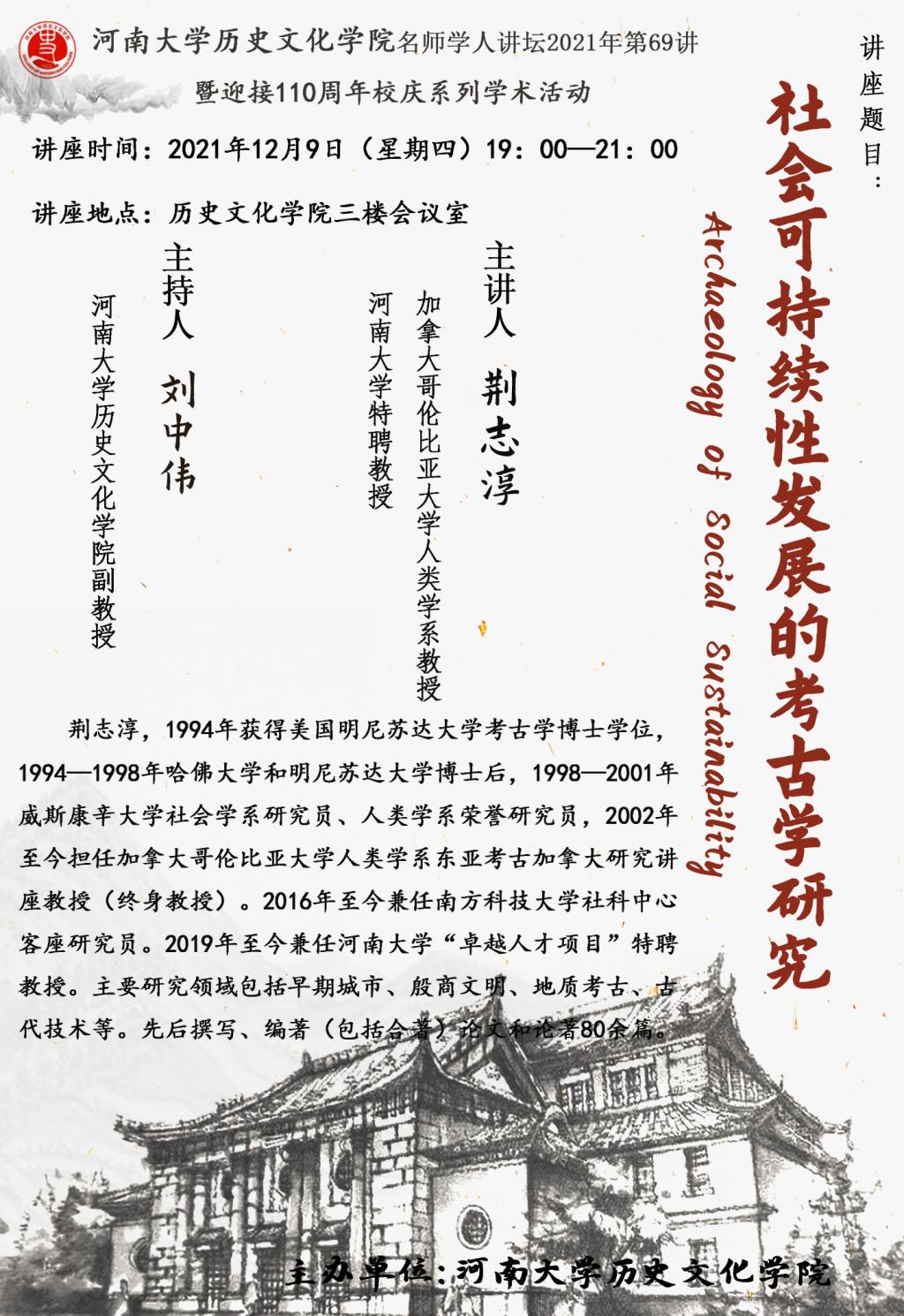 【讲座通知】荆志淳:社会可持续性发展的考古学研究