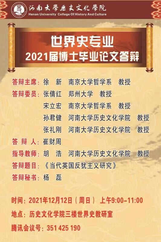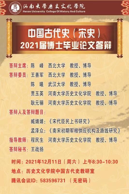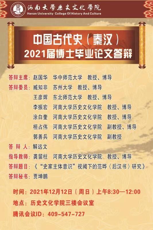 2021年下半年博士生学位论文答辩会公告