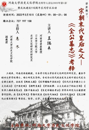 【讲座通知】王瑞来:宋朝末代皇后之父——《全公墓志》考释