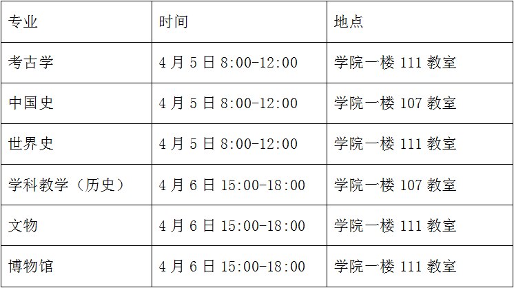专业知识面试内容为综合性、开放性的能力型试题,实行每生打分制,严格按照面试项目打分,成绩以百分计。各专业具体面试时间安排如下: