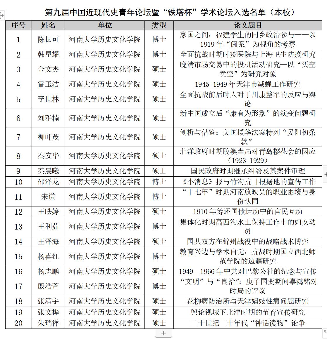 再次感谢广大师生对第九届中国近现代史青年论坛暨“铁塔杯”学术论坛的大力支持!
