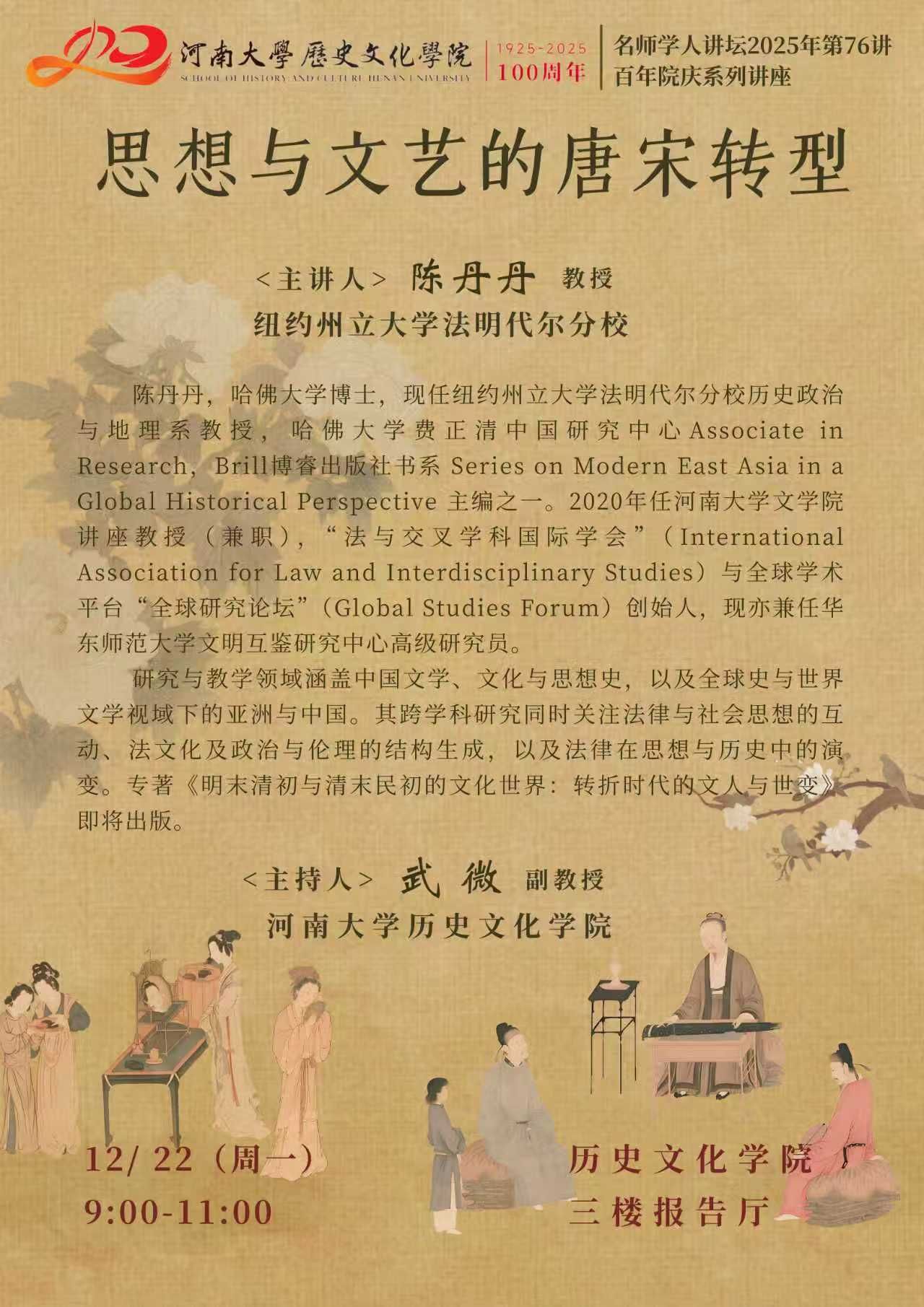 【讲座预告】陈丹丹:思想与文艺的唐宋转型
