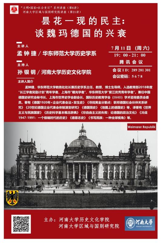 【讲座通知】孟钟捷:昙花一现的民主:谈魏玛德国的兴衰