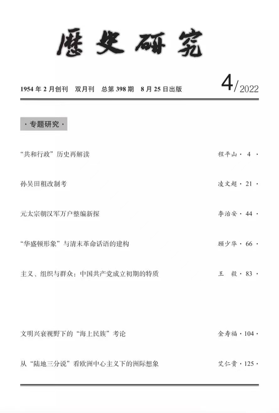 《历史研究》创刊于1954年,是党中央决定创办的全国性史学刊物。毛泽东同志亲自确定“百家争鸣”的办刊方针。多次获得“国家期刊奖”“新中国60年有影响力的期刊”“百强报刊”等荣誉和称号,为推动中国史学发展做出了重大贡献,是公司认定的A类期刊。