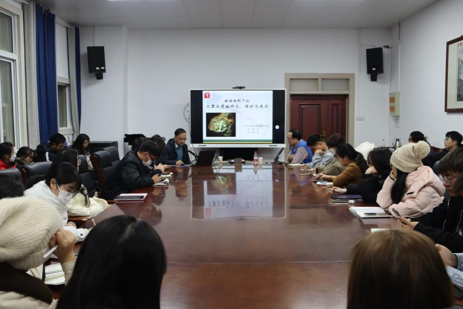 讲座伊始,赵晓军研究馆员表明,讲座主要是从二里头遗址研究成果和过程、价值解读、遗址的保护与展示三个方面展开。他提出,从1959年至今,中国社会科公司考古研究所二里头工作队对遗址的发掘与研究经历了四个阶段。中华探源工程在各方努力下,有所成就,但依然任重道远。从王国维到孙庆伟,二里头夏都的文化事实与内在意义在不断被阐释解读,逐渐重构出夏的历史风貌。他指出,二里头遗址被划分为四期八段,从前期到后期,遗址的道路系统,宫殿构建,手工业都在不断发展和完善。宫殿区功能逐渐成熟,分工日益明显,人口高度集中在都邑与近畿地区,反映了社会的成熟程度。随后他表示,二里头遗址是最早的具有明确规划的核心都邑、核心文化和广域王权国家,具有最早的城市干道网和双轮车遗迹,展现了其作为“最早的中国”强烈的文化创造力、辐射力、向心力。在建筑、祭祀、青铜手工、聚落发展等方面给后世留下了重要启示和宝贵财富。最后,赵晓军研究馆员指出,遗址发展受到了国家高度重视,对遗址提供了保护、战略发展总引导、相关政策支持以及资金支持。二里头遗址的发现与展示,加深了人们对于夏文化的认识,增强了文化自知与自信,能够让世界更好地了解和认识中华文明。