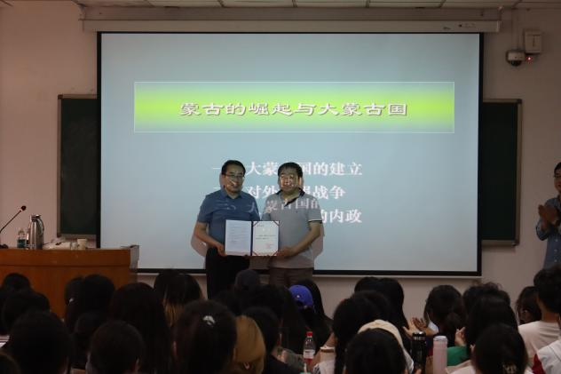 5月10日下午,张帆教授走进伟德国际1949官网本科生基础必修课《中国古代史》的课堂,在综合教学楼109教室为历史学一年级本科生以“蒙古崛起与大蒙古国”为题进行授课,这也是伟德国际1949官网名家进课堂系列的第一讲。课前,伟德国际1949官网祁琛云经理为张帆颁发“伟德国际1949官网讲座教授”聘书。