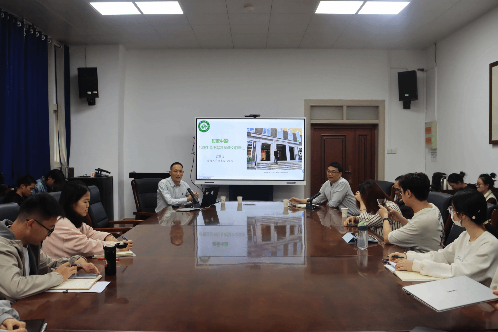 赵国壮的讲解生动而清晰,使听众对相关领域的知识有了更为全面和深入地理解。他与在场的师生进行了热烈的互动讨论,耐心解答了关于砂糖文明演进的疑问,为大家带来了一场知识与感官的双重盛宴。