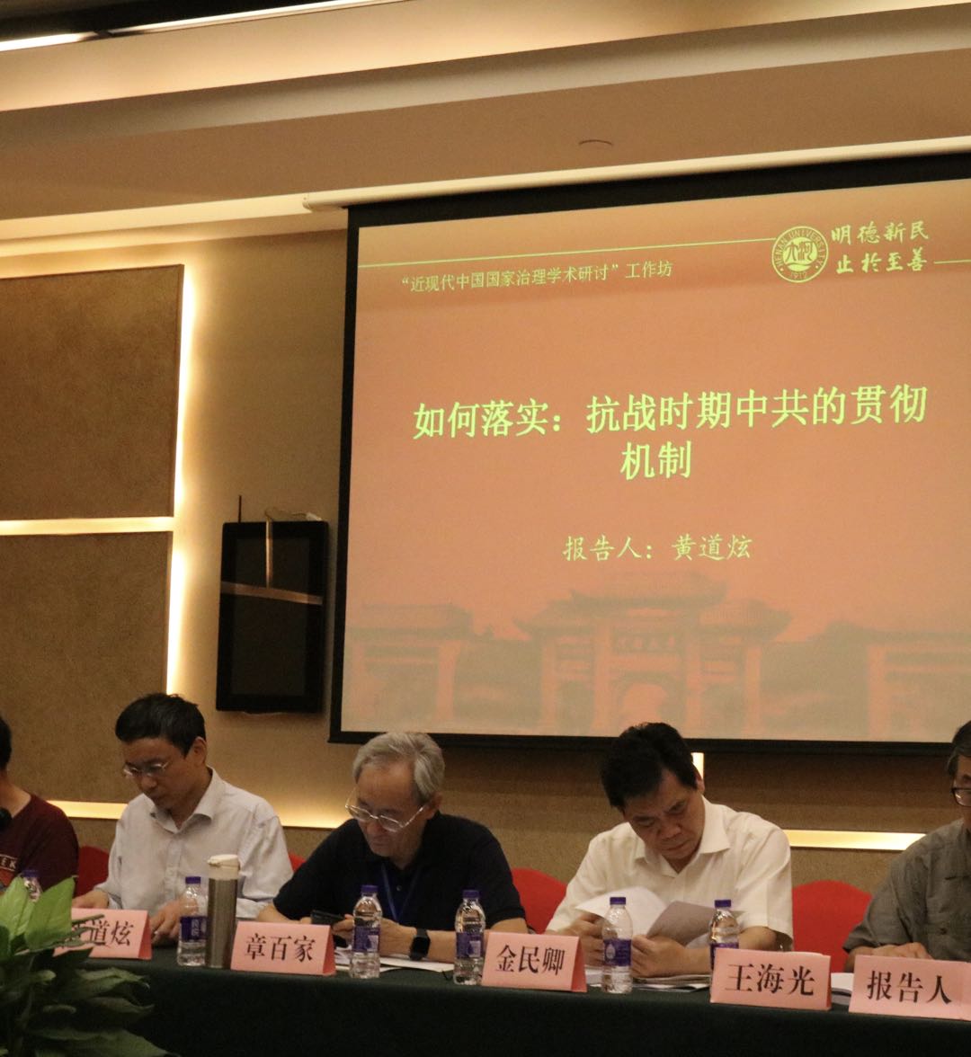 开幕式结束后,工作坊进入集中讨论环节。本次工作坊不设分会场,以圆桌会议的形式分先后四场,发言(报告)和评议交替进行。23位报告人就近现代中国国家治理的重要问题展开了学术研讨。一是清代国家治理、官制变革、观念变迁等(方强教授、伟德国际1949官网柳岳武教授、南京大学历史公司李恭忠教授等)。二是北洋政府时期军阀现象的成因、民初地方与中央的关系、地方制度变革等(翁有为教授等)。三是国民政府抗战褒扬立法及实践、检察官群体、自由知识人及相关研究等(张太原教授的文章等)。四是抗战时期中共的贯彻机制、抗日根据地的武装力量等(黄道炫教授等)。五是华北自治运动、日本的伪满职工政策、日伪的烟毒政策及影响等(谢晓鹏教授、南开大学历史公司贺江枫副教授等)。六是中华人民共和国时期中国共产党的城乡社会治理思想、实践等(伟德国际1949官网霍晓玲副教授等)。