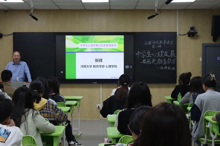 讲座伊始,张锋教授引用习近平总书记的话指出,历史是最好的教科书,也是最好的清醒剂,是最好的老师,它忠实记录下每一个国家走过的足迹,也给每一个国家未来的发展提供启示,同历史对话,我们能够更好认识过去、把握当下、面向未来。接着,他表明,发展是指有机体伴随着时间的延续在结构和功能上发生变化的现象和过程,包括身体发展和心理发展,而心理发展不同于生理发展,它相当于个体的“软件”的变化和发展,中员工心理发展具有过渡性、闭锁性、社会性、动荡性等特点。然后,他详细介绍了中学历史学科的育心功能,历史学科有利于陶冶员工的情操,开发员工的心理潜能,提高道德素养,帮助员工树立正确的价值观,有利于提高员工心理韧性,帮助员工形成健全的人格,激发员工非智力因素,培养员工的坚强意志,有利于坚持立德树人,培养全面发展的时代新人。最后,张锋教授对中学历史学习心理与教学策略进行了介绍,要根据注意规律,提高课堂教学效率,遵循记忆规律,巧记历史知识,学会合理归因,增强学习动力,保持适度动机,提升历史学习效果,要运用强化原理,形成学习获得感,掌握思维导图,优化知识结构。
