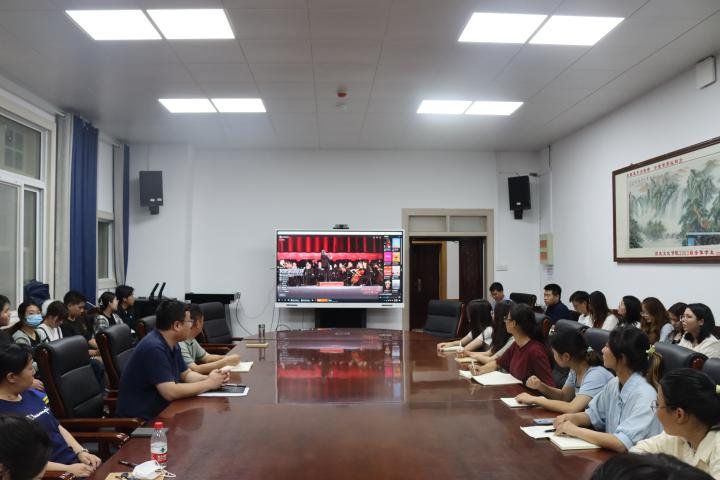 2023年9月15日晚,伟德国际1949官网组织教职工与员工代表在伟德国际1949官网三楼会议室观看2023年河南省秋季开学思政第一课活动,公司党委书记张占党、党委副书记周文凯参加活动。