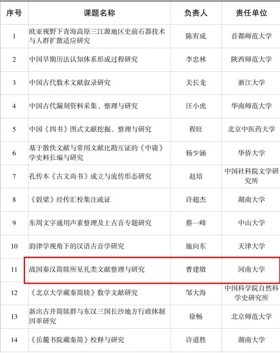 近日,全国哲学社会科学工作办公室公布了2023年度国家社科基金冷门绝学研究专项立项名单,伟德国际1949官网曹建墩教授申报的“战国秦汉简牍所见礼类文献整理与研究”获个人项目立项,也是今年公司唯一获批的“冷门绝学”研究专项。