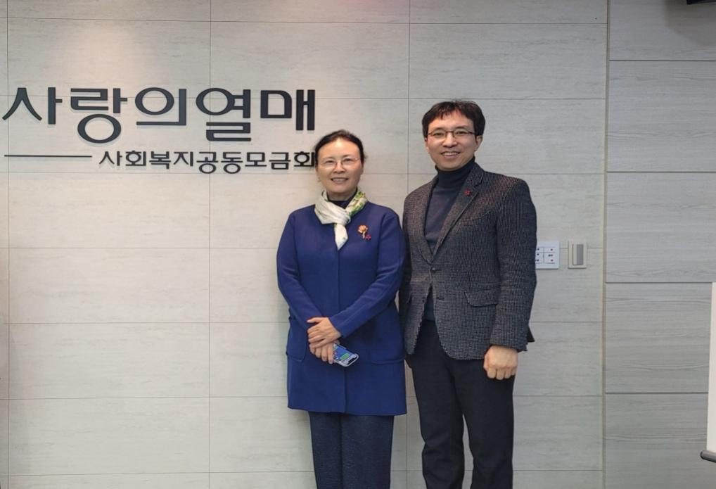 此行除了大会交流,郭常英教授还受韩国社会福利共同筹款会的邀请,对该会在首尔的工作基地进行参访,进一步了解韩国社会福利募捐情况以及历史,并与参加此次三国学术会议学术研讨的韩国社会福利共同筹款会分享文化部负责人金努里先生交流、分享两国社会福利史的相关话题。