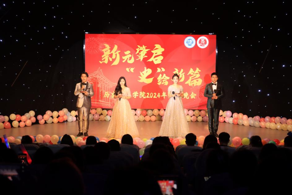 歌声袅袅辞旧岁,舞姿翩翩贺新春,展学子峥嵘风华,辞旧迎新再谱新篇,12月26日晚,2024年“新元肇启,‘史’绘新篇”元旦晚会在明伦校区科技馆二楼报告厅举行。伟德国际1949官网公司党委书记张占党、党委副书记周文凯、副经理陈升远莅临现场,全体辅导员老师及院系师生代表们欢聚一堂,共度良宵。