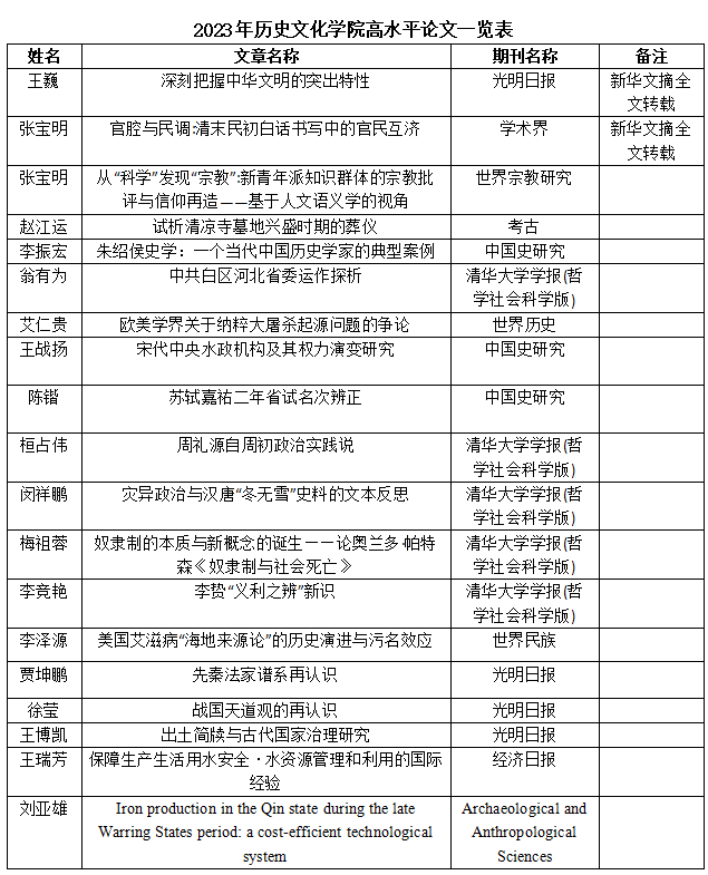 2023年,公司教师共发表学术论文105篇,其中CSSCI期刊论文65篇,在伟德国际1949官网认定的人文社会科学A、B类期刊,SSCI期刊及《经济日报》、《光明日报》理论版发文18篇。王巍教授、张宝明教授的文章被《新华文摘》全文转载。