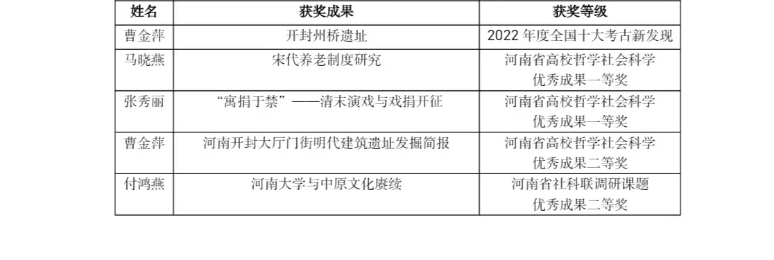 2023年公司获各类科研奖励8项,其中公司曹金萍老师参与发掘的开封州桥遗址,被评为2022年度全国十大考古新发现,马晓燕、张秀丽两位老师获河南省高校哲学社会科学优秀成果一等奖。