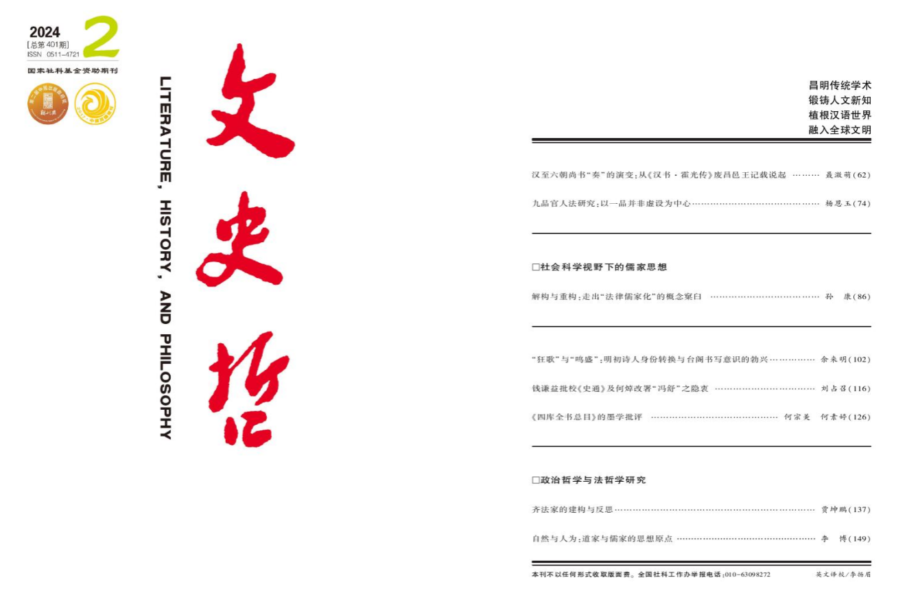 近日,公司青年教师贾坤鹏在《文史哲》(2024年第2期)刊发文章《齐法家的建构与反思》。