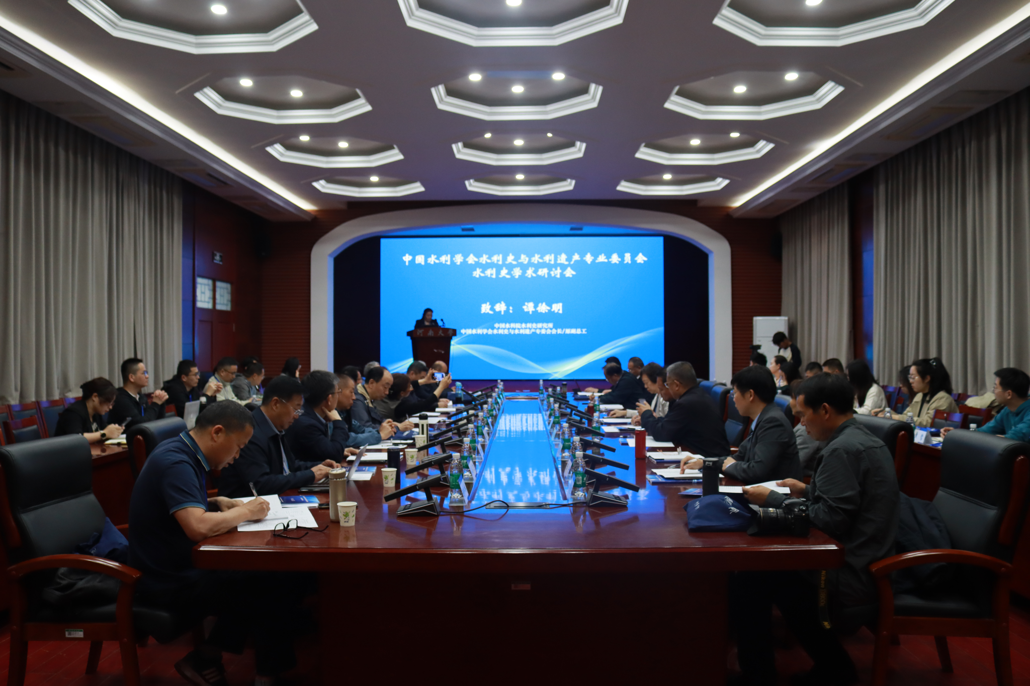 主旨报告第一阶段由中国水利学会水利史与水利遗产专委会副会长王凯主持。水利部移民司副处长陆煜、河海大学教授陈菁、南京市水务局原局长王凯、中国水科院水利史研究所原副总工谭徐明、水利部财务司原一级巡视员(正司级)牛志奇、水利部淮河水利委员会办公室副主任郑朝纲、中国水利学会水利史研究会教授级高级工程师徐海亮、中国水利报社原副总编辑张卫东、陕西省水利厅直属机关党委副书记耿涛、河南省水文水资源中心编审杨惠淑、云南农业大学教授褚锡斌、中国水科院水利史研究所副所长李云鹏等12人,分别以“水库移民志的编纂工作进展情况介绍”“河流伦理的理论与实践”“重庆(八区)水利遗产调查与保护利用之我见”“台州两江闸研究”“黄河治理文化的突出特征”“新中国初期治淮实践中党的领导力研究”“地质环境与黄河问题”“九州万里寻禹迹 守正创新溯文明”“对陕西长江流域水利遗产保护利用的思考”“浅析水利遗产的保护和利用的重要性”“云南大理州弥渡县传统地龙灌溉工程及其技术追溯”“对水利史学科及其研究体系的思考”为题作主旨报告。
