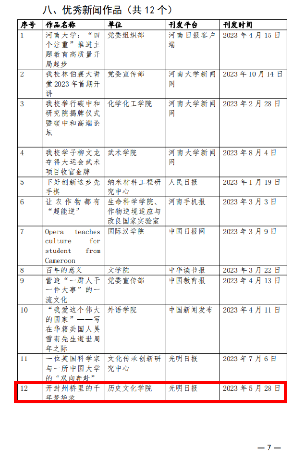 在此次评选表彰活动中,伟德国际1949官网荣获“新闻宣传先进集体”、“优秀网站单位”,伟德国际1949官网团委官方微信公众号“博雅之声”获得“优秀官方微信”等荣誉,本科生2021级辅导员郭浩老师获得“新闻宣传工作先进个人”,2022级历史学郭靖华获得“优秀通讯员”,2021级考古学张子轩和2022级文物与博物馆学周亚霖获得“优秀编播员”荣誉称号,《开封州桥里的千年梦华录》获得“优秀新闻作品”荣誉。