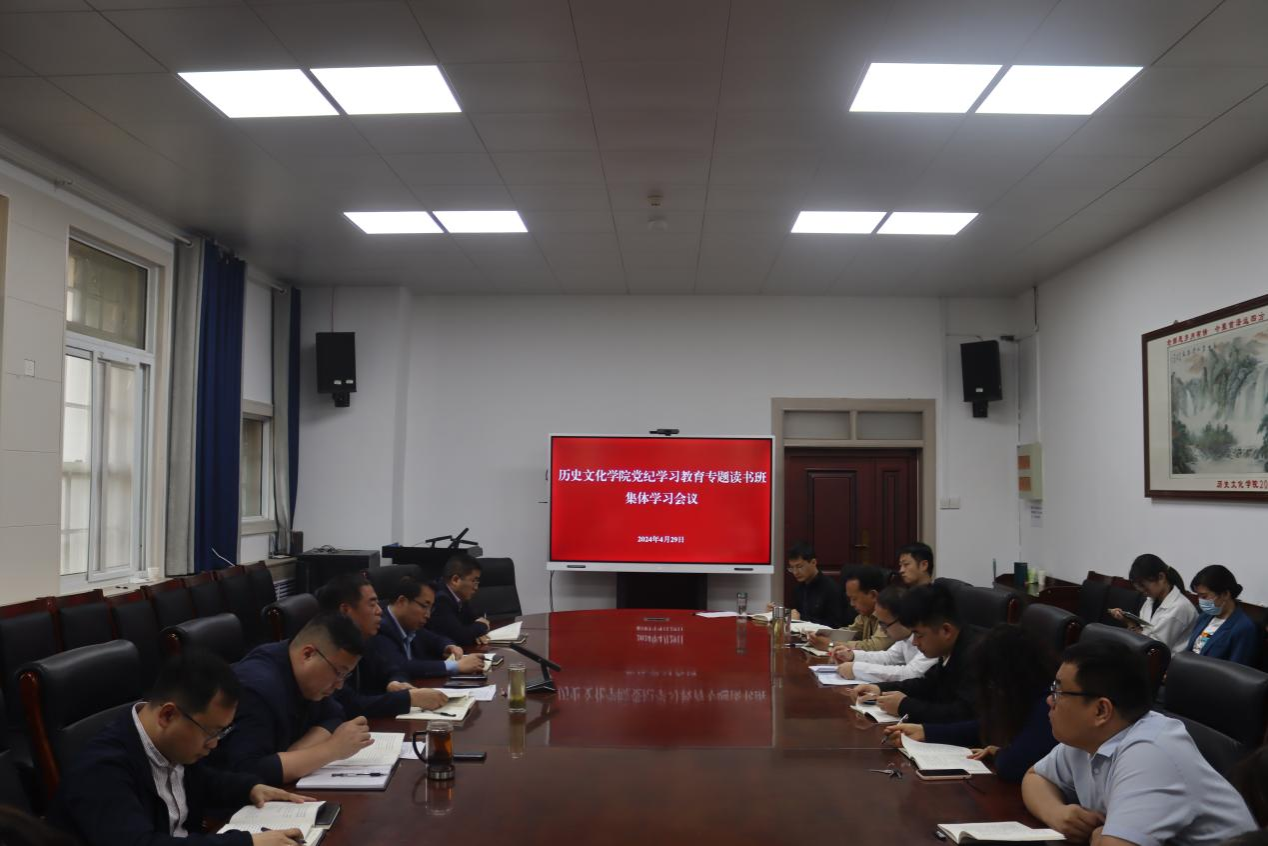 30日下午,公司举办党纪学习教育专题读书班研讨交流会。副经理胡浩、《史学月刊》编辑部党支部书记张秀丽、本科生第二党支部书记贾茜贝、中国近现代史教研室主任贺怀锴、世界历史系教研室副主任杨磊、教务办公室主任张芳芳、行政办公室负责人郑振亚、硕士中国近现代史世界史专业党支部书记姜开颜分别发言,他们结合学习《条例》情况,把自己摆进去、把职责摆进去、把工作摆进去,分享学习心得,交流学习感悟。