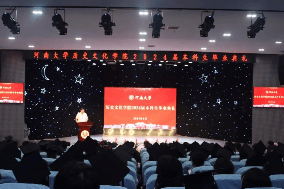 2024届历史学专业田管宁作为毕业生代表进行发言,他回忆了四年来的种种收获,向老师给予的的关怀和帮助表达了感谢,表示会将“明德新民,止于至善”的校训铭记于心,在人生的新征程中乘风破浪,砥砺前行。在校生代表2021级考古学专业张子轩回忆了与学长学姐共度的四年愉快时光,感谢他们在学习和生活中给予的关心与支持,并祝愿各位学长学姐前路坦荡,所得皆所愿。