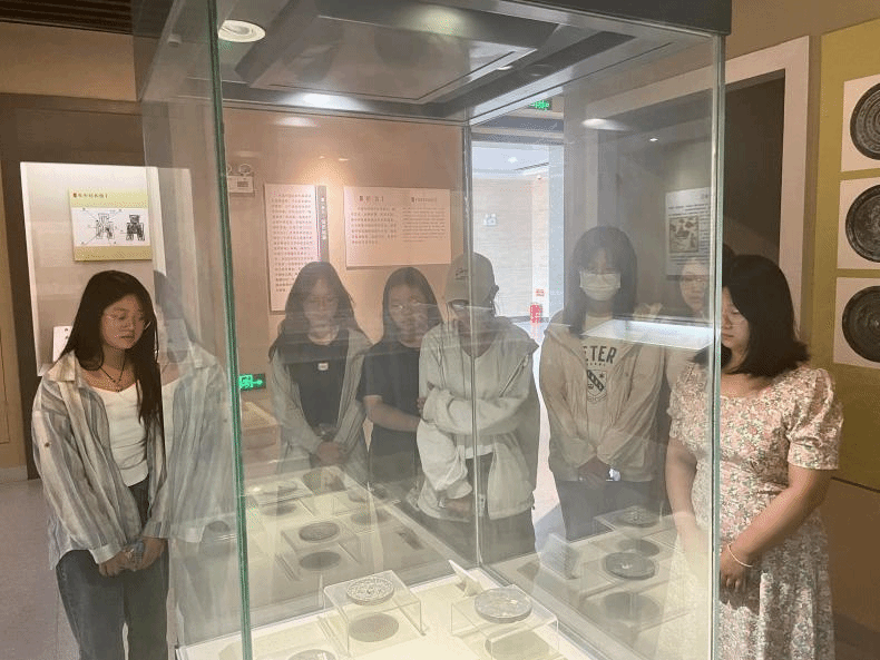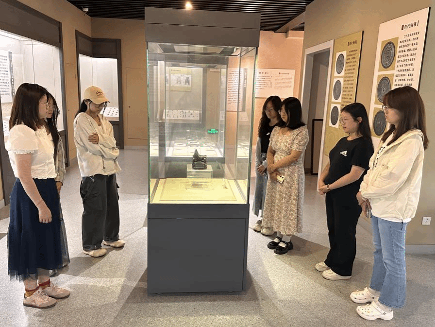 文物与博物馆学专业员工在任课老师曹金萍带领下在文物馆开展实践教学。首先,看实物感历史,依托文物馆陈列的文物直观概括中国古代物质文化发展史的脉络、实物展示各个时期物质文化的典型特征、货币实证中华文明的突出特性,让员工在认知文物的同时宏观地感知历史、增强民族自信;其次,观展览提问题,结合《中国古代钱币》课堂内容重点围绕文物馆古代钱币展厅的基本陈列内容进行点评,引导员工针对陈列展览设计、展品摆放、展陈方式以及讲解内容设计和参观路线导引规划等多方面提出问题并展开讨论。文物馆实践课堂内容环环相扣,过程积极互动,使员工真正成为课程的主导者,实现教学主体的多样性与互补性相结合,活化书本理论知识,以实践感知促理论吸收、以理论知识提高实践质量。