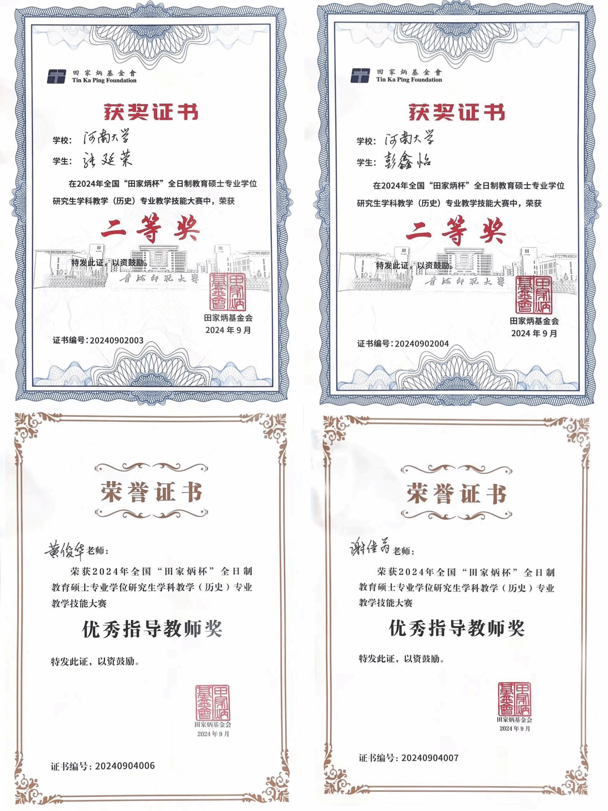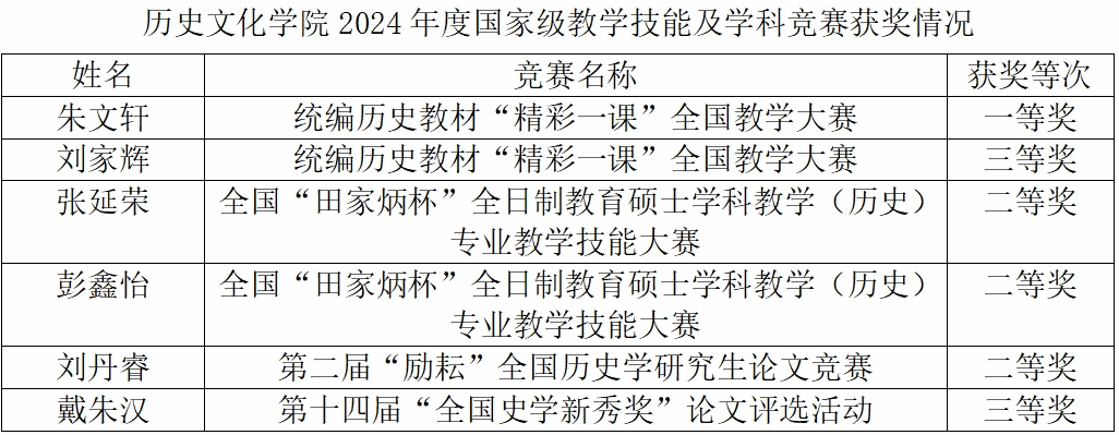 近日,2024年全国“田家炳杯”全日制教育硕士专业学位研究生学科教学(历史)专业教学技能大赛决赛在青海师范大学落下帷幕。伟德国际1949官网副经理闵祥鹏带队参赛,最终2023级学科教学(历史)专业员工张延荣、彭鑫怡分别斩获二等奖,指导教师黄俊华、谢佳芮荣获“优秀指导教师”称号。