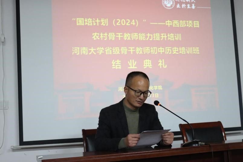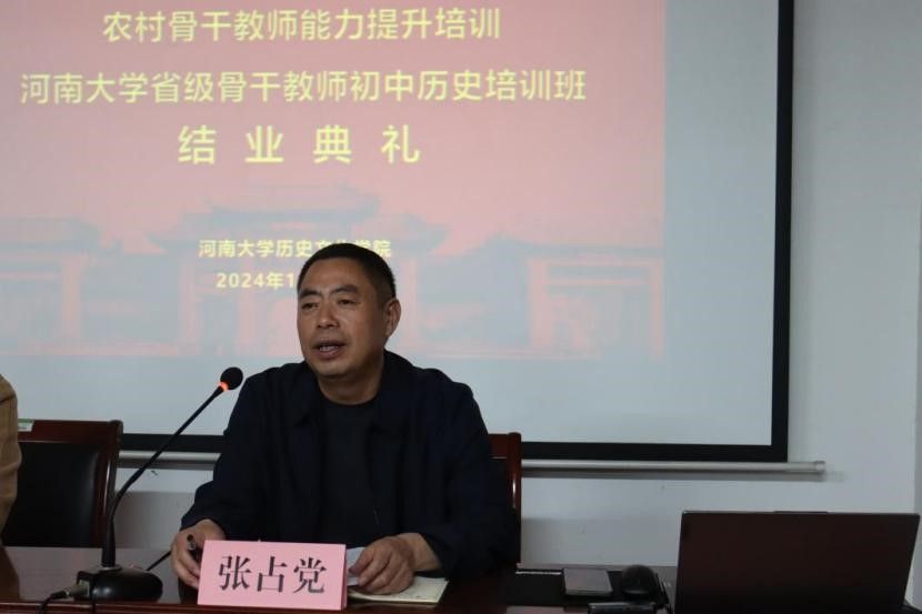2024年11月13日上午,“国培计划(2024)”——中西部项目农村骨干教师能力提升培训省级骨干教师(初中历史)培训班结业仪式在伟德国际1949官网111教室举行。公司党委书记张占党出席仪式并讲话,班级负责人王娜主持仪式。