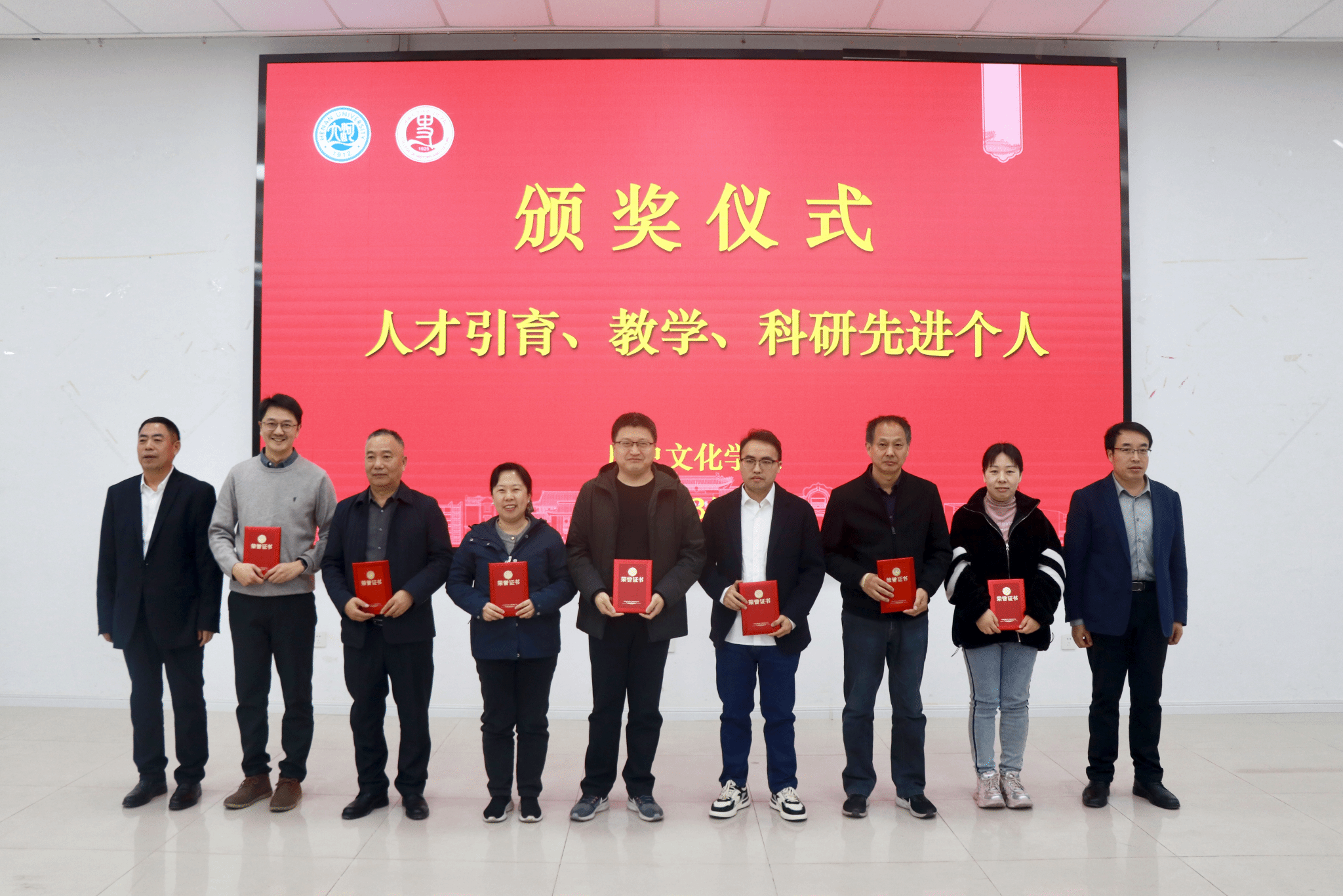 副经理陈升远、闵祥鹏、胡浩分别宣读《伟德国际1949官网关于表彰2024年度人才引育先进个人的决定》《伟德国际1949官网关于表彰2024年度教学先进个人的决定》《伟德国际1949官网关于表彰2024年度科研先进个人的决定》文件,受表彰教师代表上台领奖并合影留念。