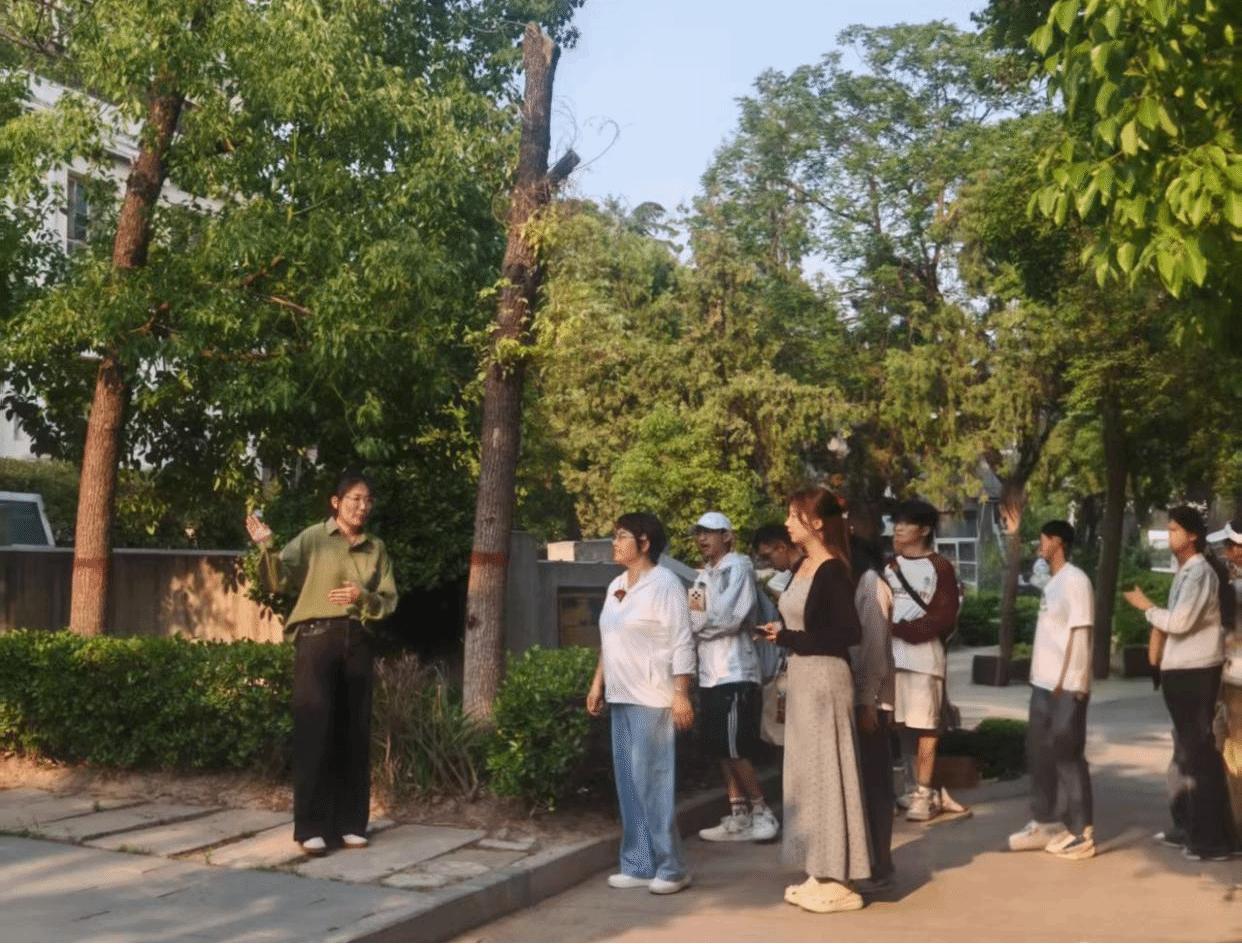 在双龙巷,滕老师讲述了双龙巷名称的由来,指出“双龙潜居”的记载实际反映了市民阶层对皇权起源的神秘化想象。同学们在考察中了解到,双龙巷内现有张钫故居、陈慰儒故居以及“私立静宜女子中学”旧址等21处不可移动文物。