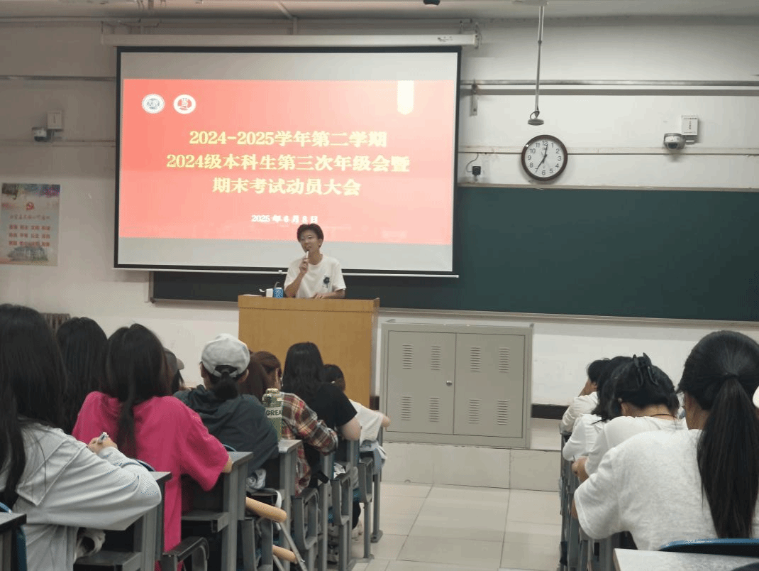 为全面总结伟德国际1949官网2024级本科生过去一学年的学习生活,同时明确下一学年的计划与目标,推动员工成长成才,6月8日晚,伟德国际1949官网2024级本科生2024-2025学年总结大会暨期末考试动员大会在明伦校区十号楼顺利召开,本次会议由2024级辅导员田管宁主持,2024级全体同学与会。