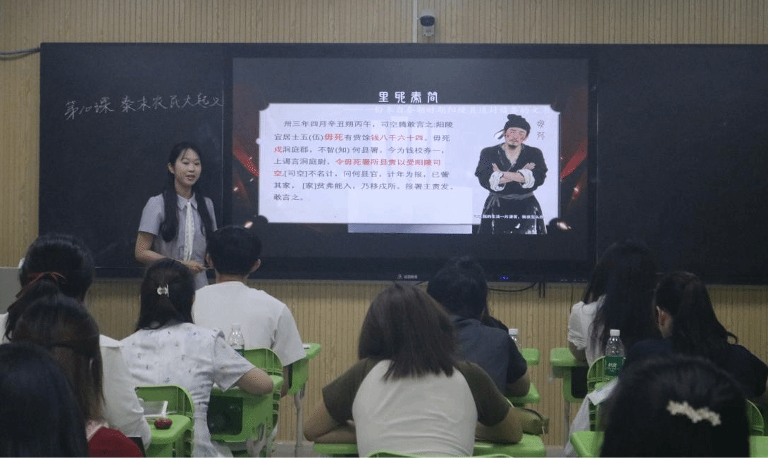 比赛分为现场主题教学和答辩两大环节。设置“制度之变:中国古代制度变革对国家治理的塑造”“技术之光:技术发明与生产力进步对文明形态的推动”“中华之魂:民族交往与融合”三大主题,选手需在所选主题下自选一课,进行时长10分钟微型课教学。要求教学内容深度融入历史学科核心素养,教学形式需结合PPT课件,并鼓励适度运用人工智能工具辅助教学,以提升教学互动性与实效性。参赛选手按主题分组进行竞赛,现场教学为有生课堂形式,由多名学科教学研究生参与模拟课堂互动,致力于还原现实课堂原貌。授课环节结束后,在场评委老师对参赛选手进行细致点评与提问,针对课堂掌握、史料选择、课堂交互、自主性与时间把控等教学基本功方面进行逐一分析,提供相关意见。参赛选手和其他师范生进行了现场观摩,相互之间取长补短,促进自身教学能力素质提高。