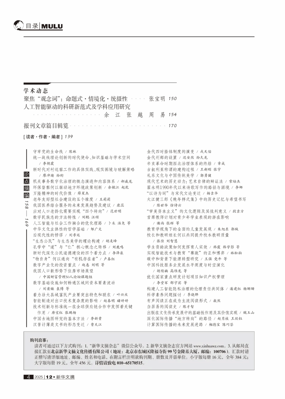 《新华文摘》创刊于1979年,由国家新闻出版署主管、人民出版社主办、新华文摘杂志社编辑出版,是大型理论性、综合性、资料性文摘类权威期刊。