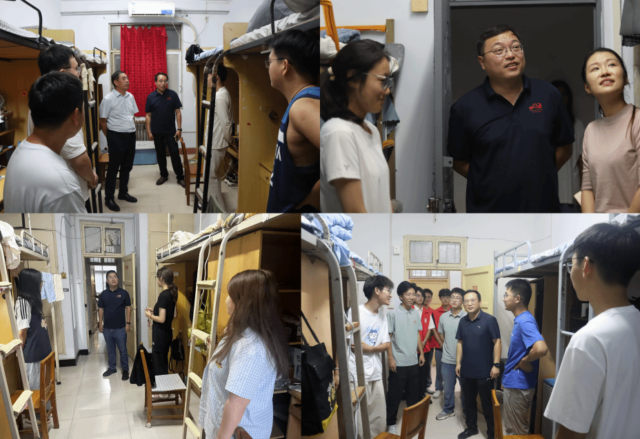 张占党、祁琛云、姜汉西一行前往明伦校区学一、学三员工公寓,细致检查设施状况,关切询问新生对校园环境的适应程度,鼓励博硕新生积极投身学术探索,提前规划学业路径,为其学术发展提供指导;周文凯、林芷羽走进仁和员工公寓三号楼,亲切了解新生的家乡背景、饮食及气候适应情况,贴心提醒军训期间注意身体状况与防晒,并特别叮嘱上下铺使用的安全事项;胡浩、贾茜贝赴明伦校区学十员工公寓,关注新生生活适应问题,围绕学业规划提出建议,鼓励他们积极参与学术研讨与实践;闵祥鹏、郑振亚在明伦校区学九员工公寓与新生交流入学体验,结合公司培养要求指导学业规划,传递学业与生活方面的双重关怀;陈升远、田管宁深入明伦校区学四员工公寓,细致察看宿舍照明等条件,了解省内、外新生的适应状况,并鼓励员工积极投身志愿服务工作。
