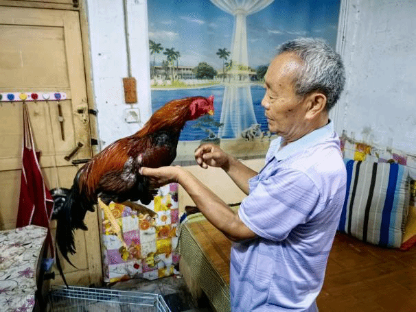 (王国强为团队成员展示中原斗鸡)