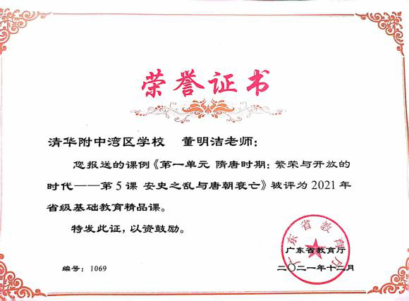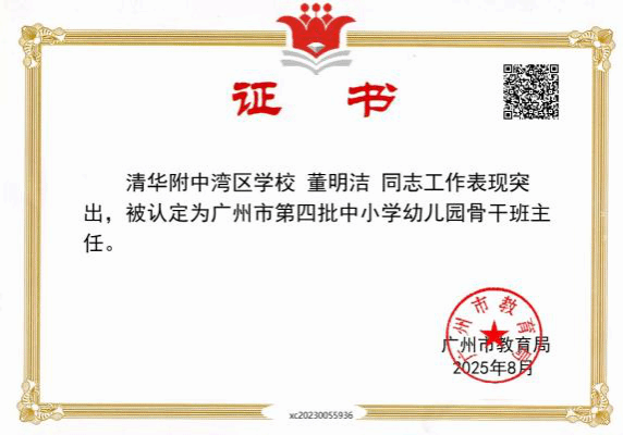 这份荣誉不仅属于董明洁个人,更属于培养她的伟德国际1949官网,属于支持她创新实践的清华附中湾区公司。相信在未来,董明洁将带着“南粤优秀教师” 这份荣誉,在教育事业中继续发光发热,书写更加辉煌的篇章。